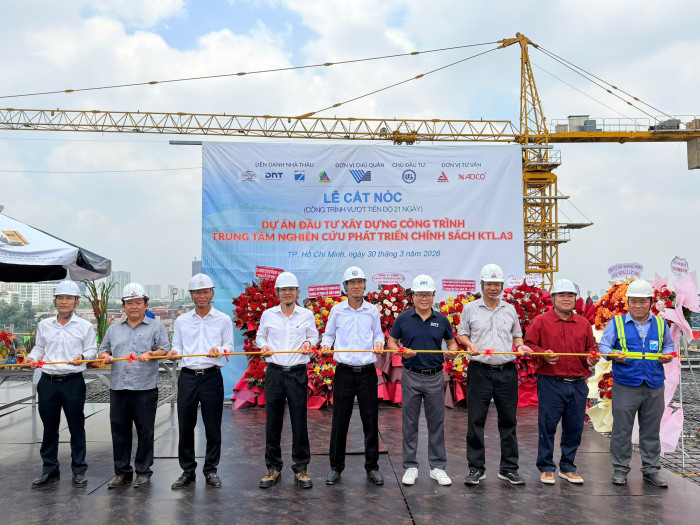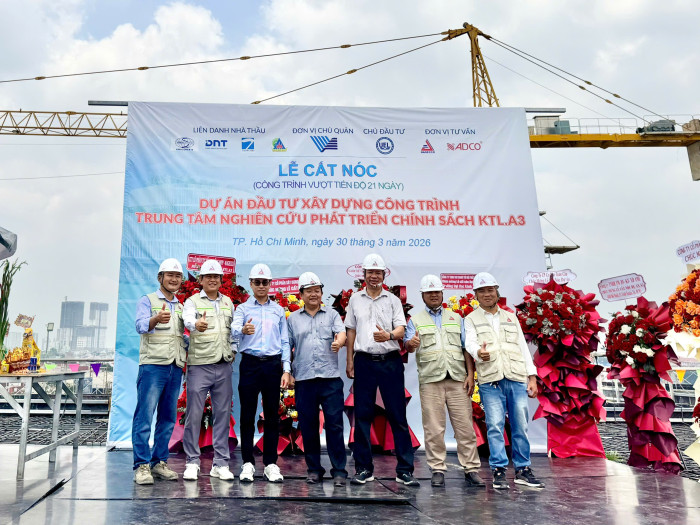 Sáng ngày 30/03/2026, lễ cất nóc công trình Khối Trung tâm Nghiên cứu Phát triển Chính sách KTL.A3 tại Trường Đại học Kinh tế – Luật (ĐHQG-HCM) đã chính thức được diễn ra. Sự kiện đánh dấu bước tiến quan trọng khi dự án hoàn thành phần kết cấu và vượt tiến độ 21 ngày so với kế hoạch, khẳng định vai trò đồng hành tin cậy của NAGECCO trong việc hiện thực hóa các công trình giáo dục hiện đại và chất lượng cao.