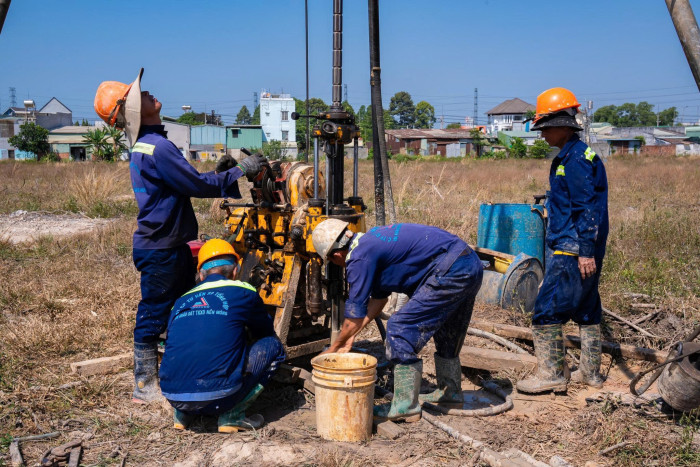 Ở hạng mục khảo sát địa chất, dự án thực hiện 551 hố khoan trải đều trên cả hai khu vực. Trong đó, hố khoan sâu nhất đạt 80 m nhằm đánh giá chi tiết cấu trúc địa tầng, phục vụ công tác thiết kế nền móng cho các công trình cao tầng và hạ tầng kỹ thuật sau này.